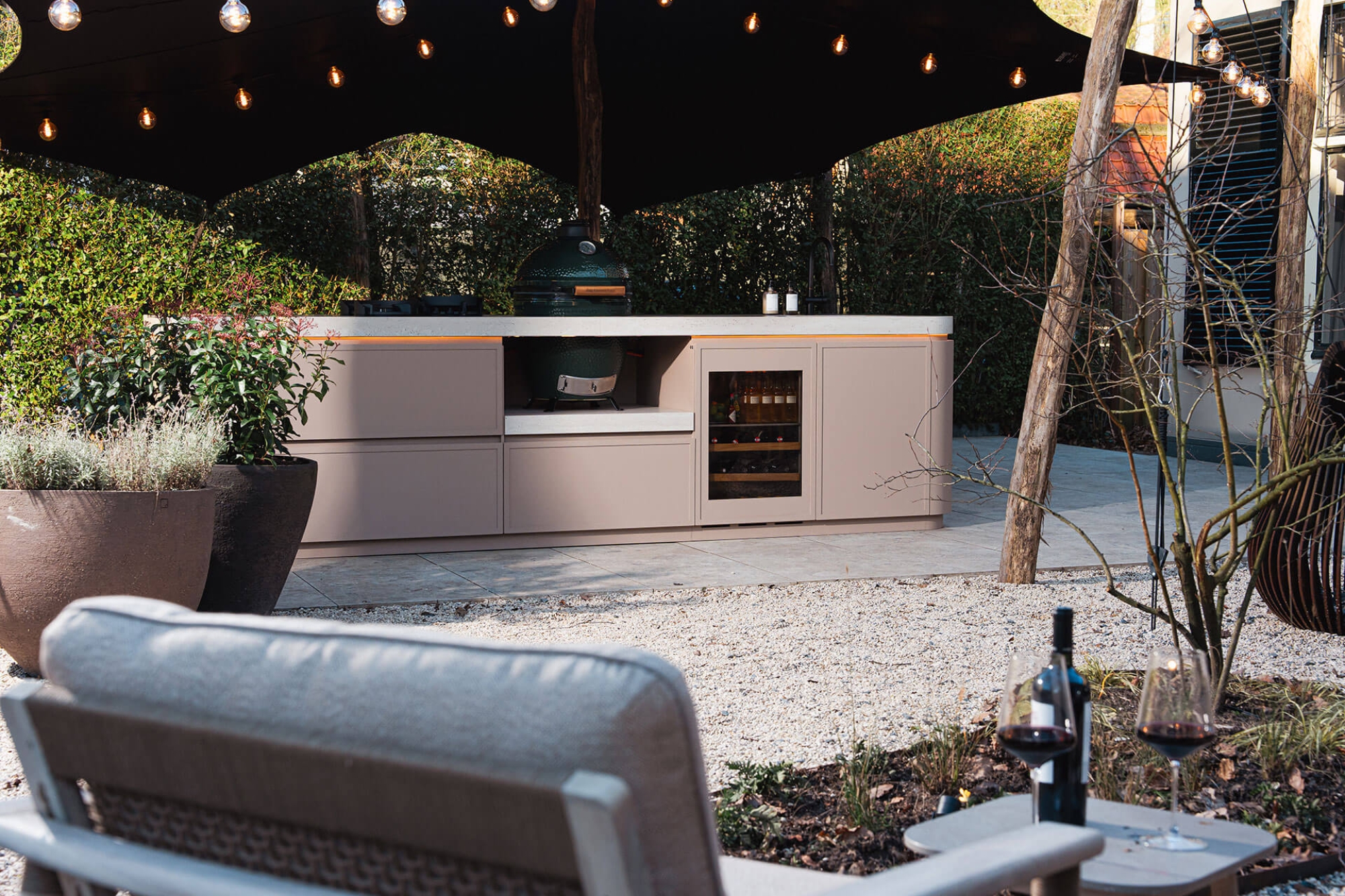 La cuisine intérieure est un élément central de notre habitation. Nos espaces extérieurs deviennent des pièces de vie à part entière, alors pourquoi ne pas leur consacrer autant d’intérêt que pour notre intérieur ? Avec notre sélection de cuisines d’extérieur, créez un réel espace de vie, un espace pratique, conviviale et personnalisable en limitant vos déplacements pour profiter pleinement de vos repas en famille ou entre amis. Nos cuisines d’extérieur sont 100% personnalisables selon vos besoins, d’une simple cuisine avec un barbecue, à une cuisine complète avec réfrigérateur, évier et plaque à induction,... Spécifiquement confectionnées pour l’extérieur, elles vous apporteront cette touche de convivialité recherchée pour vos repas. Profitez également de nos braseros pour réchauffer l’atmosphère de vos soirées et prolonger votre repas bien au chaud.